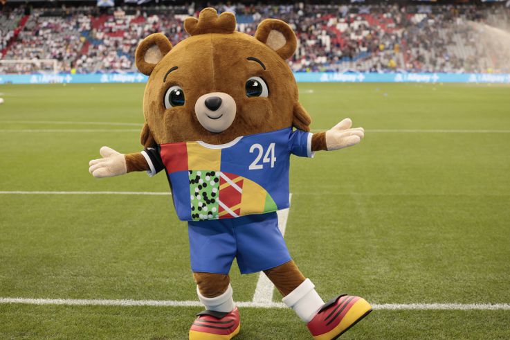 Albart, mascote do Euro 2024, preparado para o início da prova.
