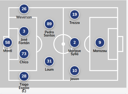 Weverson sai do campo e é substituído por Miguel Puche numa substituição tática.