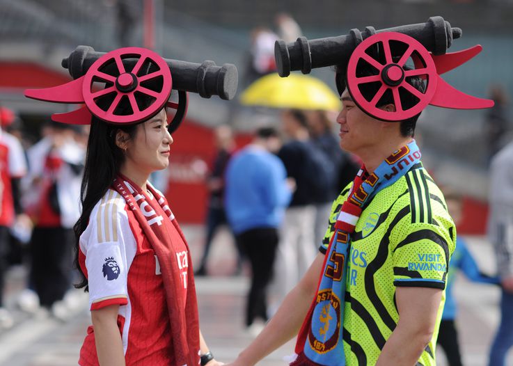Os adeptos do Arsenal já estão vestidos a rigor para o jogo: