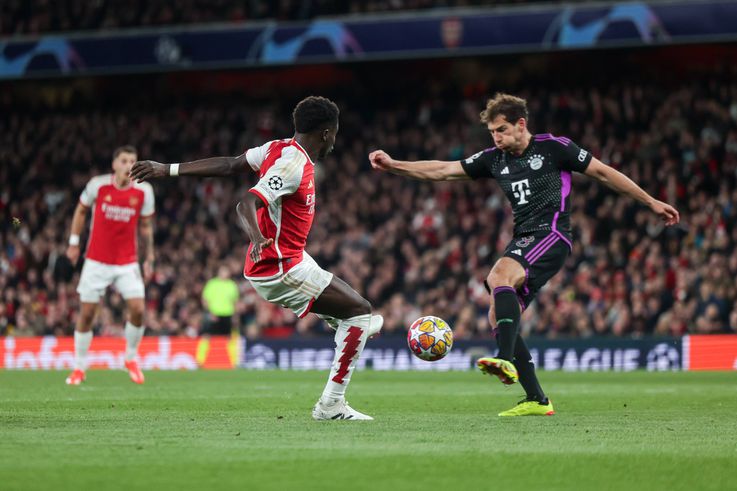 Saka (12') deu um início perfeito ao Arsenal na partida, mas depois vários erros na defesa dos gunners permitiram que o Bayern fizesse a reviravolta, com golos de Gnabry (18') e de Kane (32').