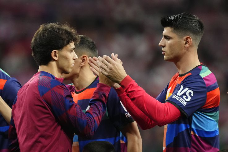 João Félix e Morata cumprimentam-se antes do início do jogo (IMAGO / NurPhoto)