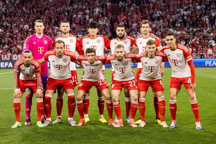O Bayern, a jogar em casa, aposta em Mazraoui na esquerda e Kimmich na direita.