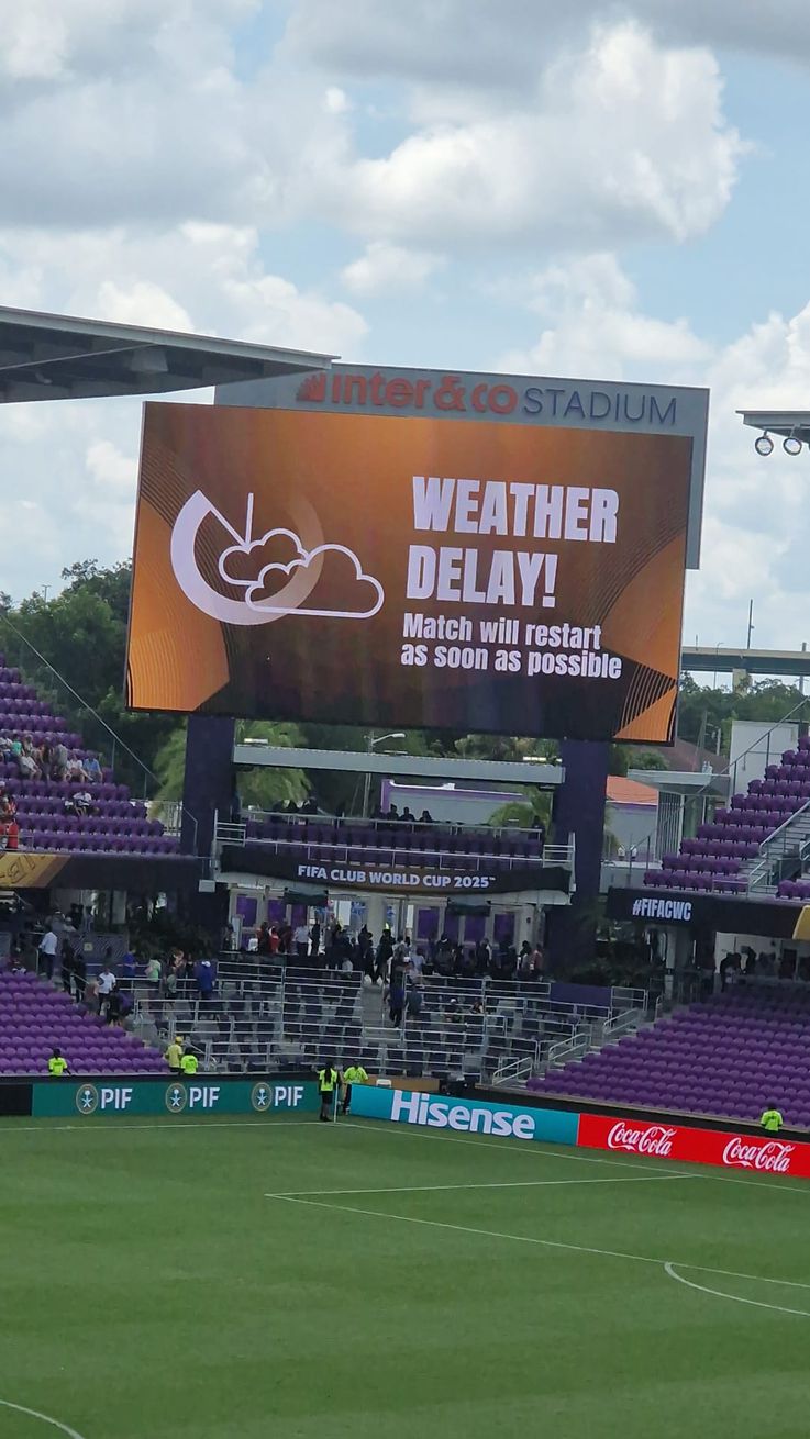 A chuva está a dar tréguas, mas as nuvens continuam escuras e ainda há relâmpagos ocasionais. A equipa de reportagem de A BOLA em Orlando aguarda update da FIFA a qualquer momento.