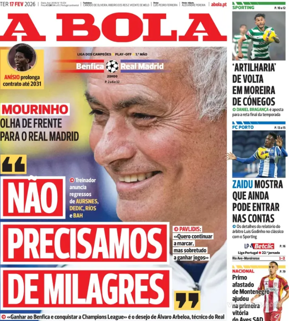 Será preciso um milagre para o Benfica bater o Real Madrid no jogo desta terça-feira e na eliminatória? José Mourinho acredita que não.