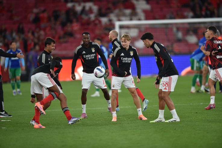 Suplentes do Benfica: Samuel Soares, Obrador, Lukebakio, Leandro Barreiro, Schjelderup, Prestianni, Henrique Araújo, Tomás Araújo e João Veloso