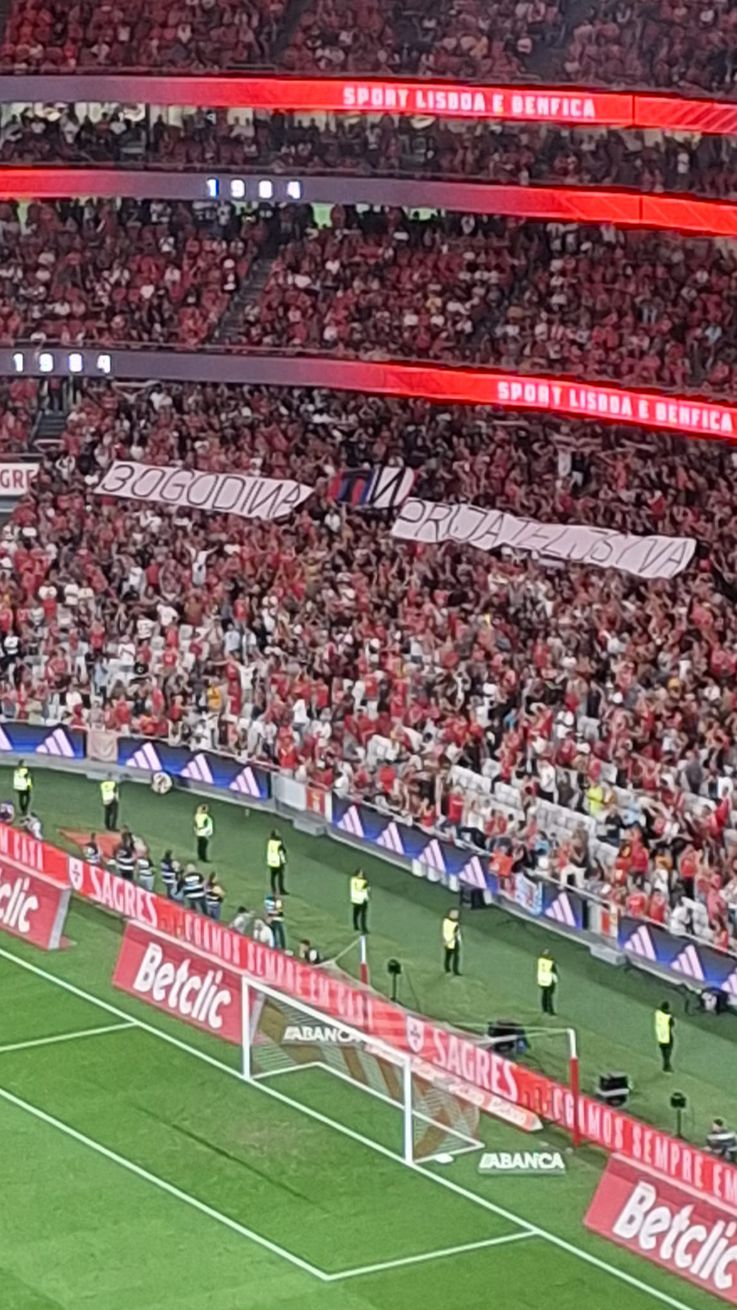 Canta-se «que sejas campeão Benfica, o amor da minha vida» nas bancadas, a uma só voz! Que ambiente que se vive neste momento na Luz!