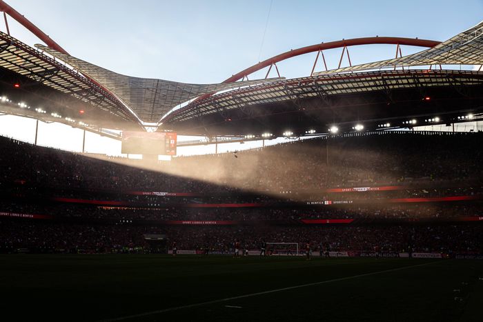 Estádio cheio, canta-se Benfica, adeptos fazem a festa.