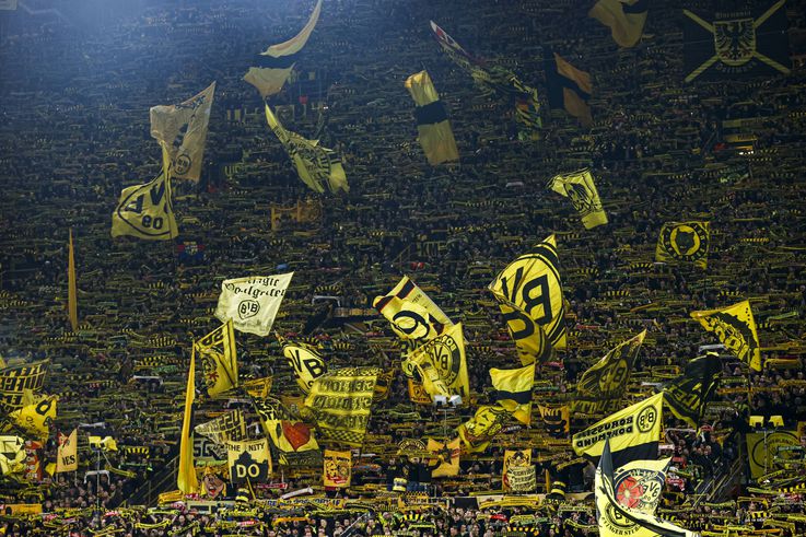 Ambientazo no Signal Iduna Park com a You'll Never Walk Alone 🐝#ChampionsELEVEN pic.twitter.com/vyOcgHCMqG