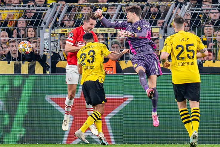 É Kobel, o guarda-redes do Dortmund, que vai segurando a equipa na Champions. O herói voltou a travar um disparo perigoso de Luuk de Jong. O PSV desespera...