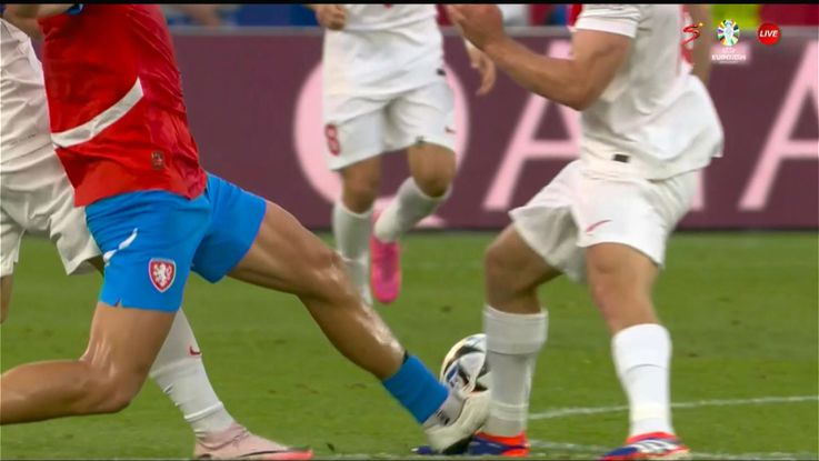 Que perdida!!! David Jurásek teve o golo para a Chéquia nos pés, mas, na cara do guarda-redes, atirou à figura.