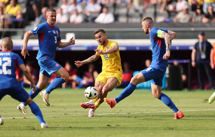 A Eslováquia vai insistindo pelo lado esquerdo onde Haraslín, um dos melhores em campo até ao momento, está a causar muitas dificuldades aos defesas romenos