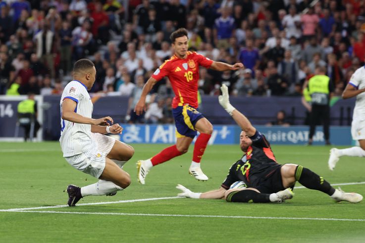 7' - Quase o primeiro! Contra-ataque supersónico, com Dembélé a servir Mbappé, que procurou Doué ao segundo poste. Valeu a atenção de Unai Simón a cortar o lance.