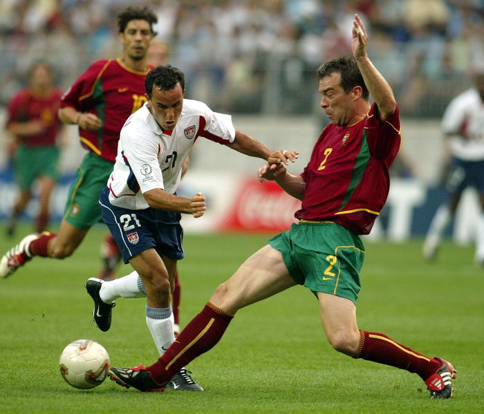 Que corte de Bacher. Kikas fugiu pelo corredor direito, já tinha calculado as coordenadas do passe para Marcus, mas o central austríaco evitou males maiores.