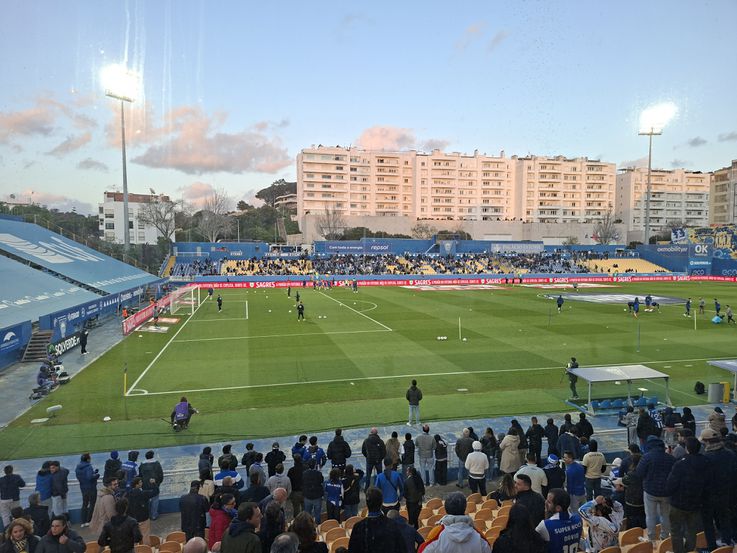É a vez da equipa do Estoril iniciar os aquecimentos. Aplausos tímidos dos adeptos da casa.