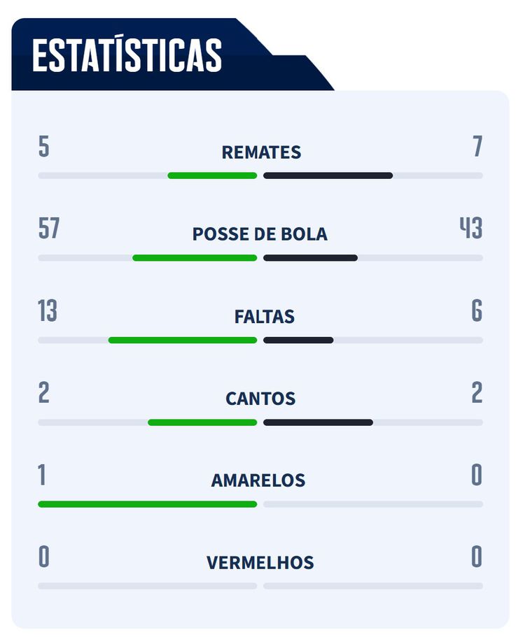 Confira a estatística da primeira parte do jogo.