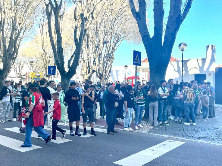 Os adeptos já estão prontos para o duelo entre E. Amadora e Sporting, nos arredores do estádio.