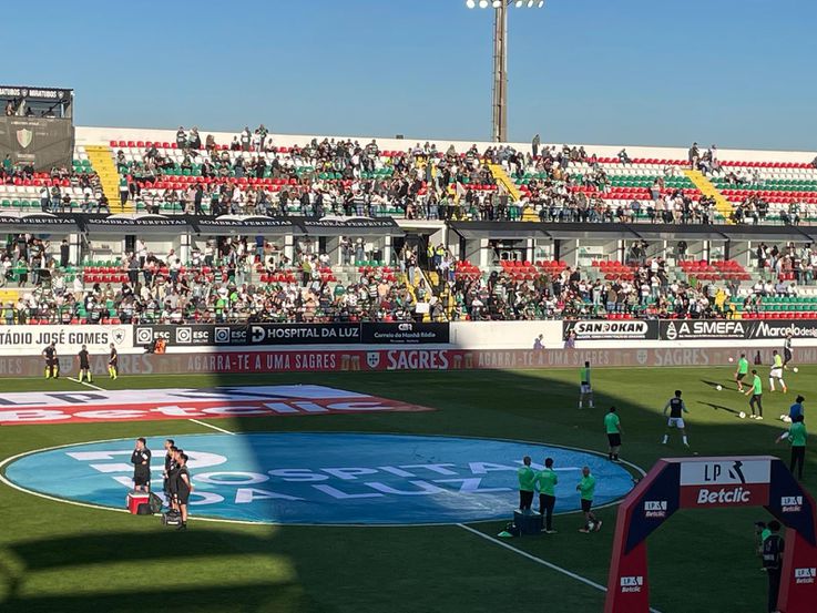 Cabeças todas viradas para a baliza a sul, para onde está a atacar o Sporting.