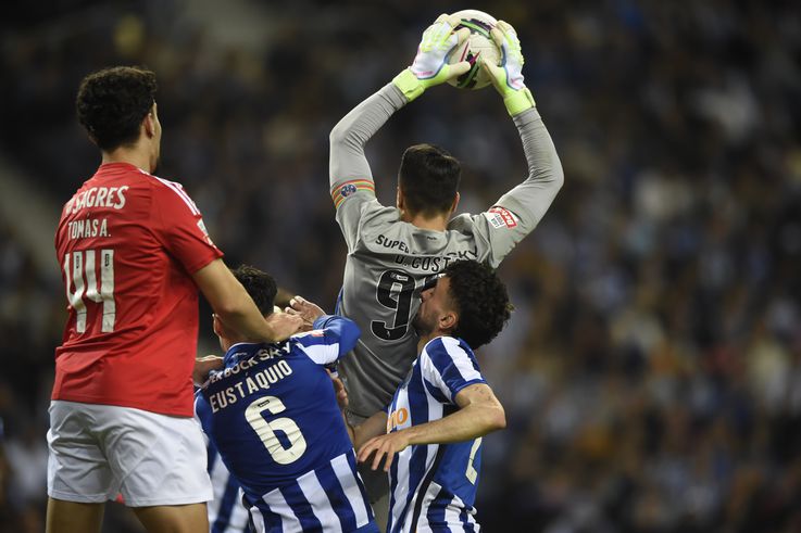 Os guarda-redes dos dois conjuntos sobem ao relvado do Dragão. Aplausos para os guardiões portistas e muitos assobios para os das águias.