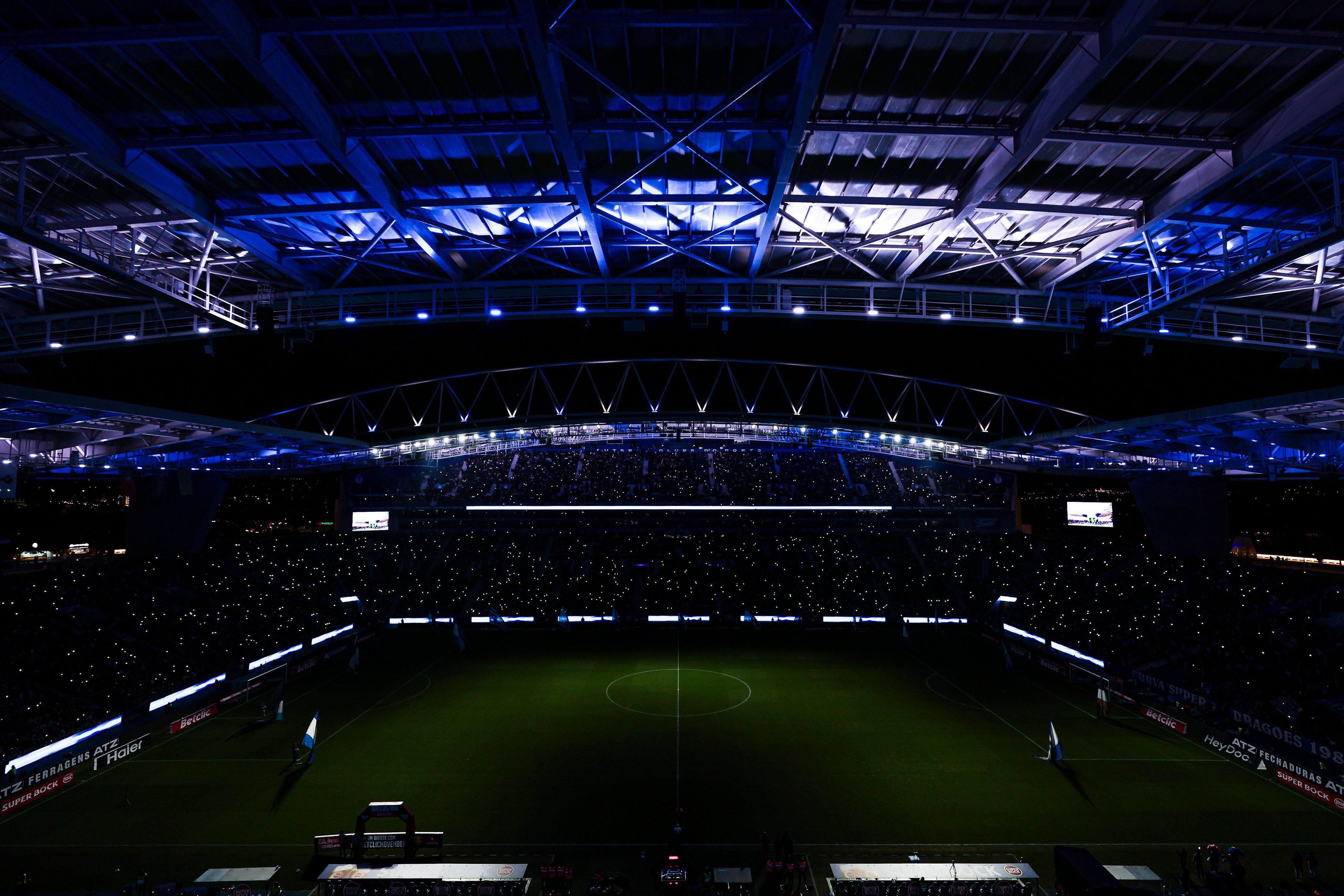 O espetáculo de luzes antes do apito inicial no Dragão: