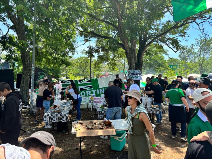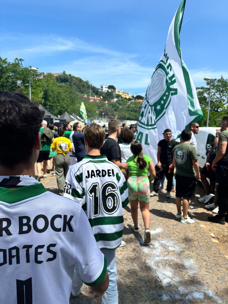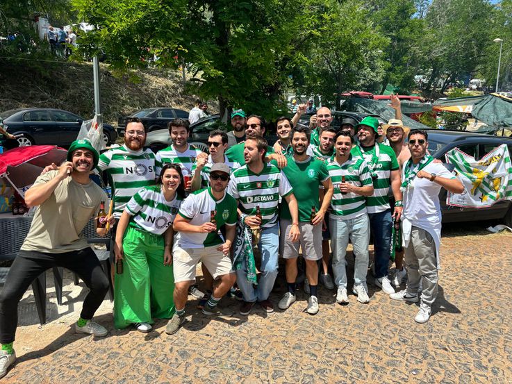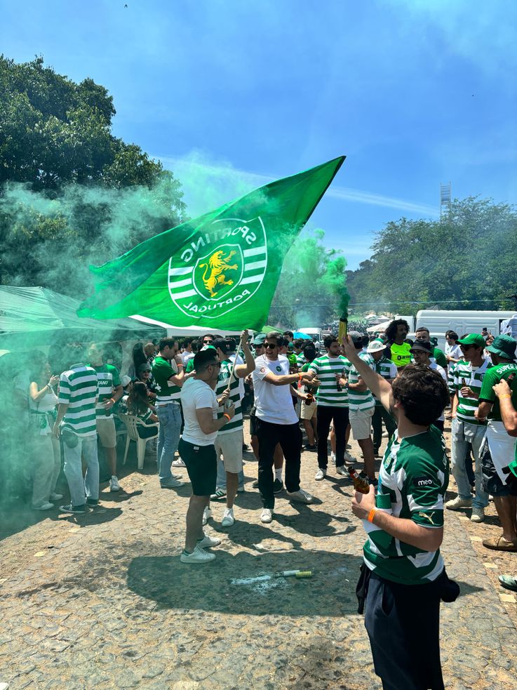 Até agora, tudo muito tranquilo. Adeptos de parte a parte festejam, a maioria separados, mas alguns juntos. As fanzones estão cada vez mais cheias, ainda que se espere que, com a abertura das portas, comecem a esvaziar. Pirotecnia com fartura, potes de fumo e flares, sobretudo.