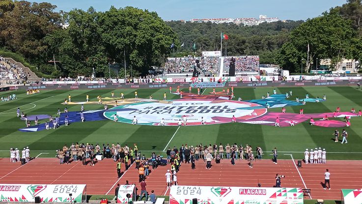 Ouviu-se o Hino Nacional no Estádio do Jamor. O jogo está mesmo, mesmo a começar!