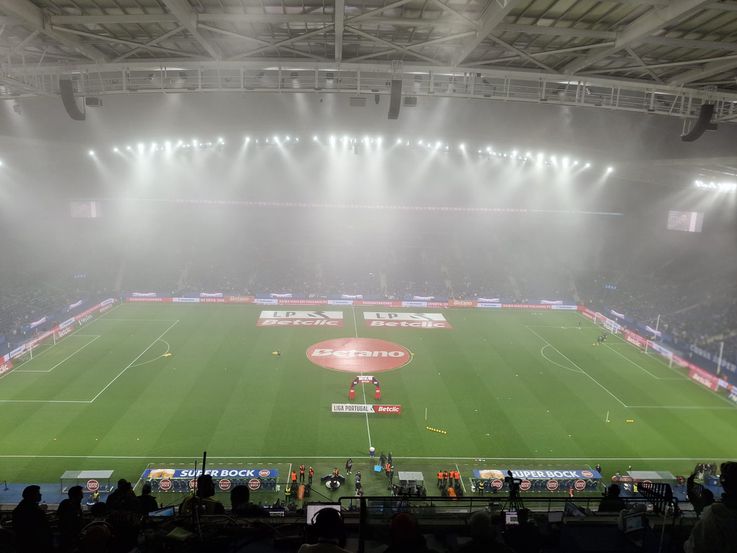 No outro lado da bancada do Dragão, quem faz a festa é o nevoeiro. Não se consegue sequer ver a zona onde se sentam os adeptos do Sporting.
