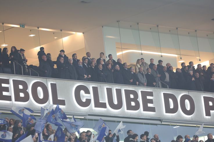 Frederico Varandas e André Villas-Boas perto um do outro na tribuna do Dragão.
