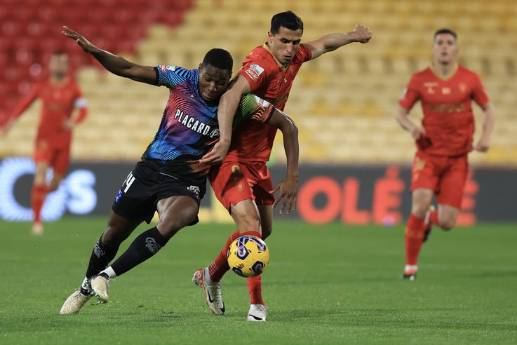Tidjany Toure do Gil Vicente recebe um cartão amarelo após uma entrada dura sobre um adversário.