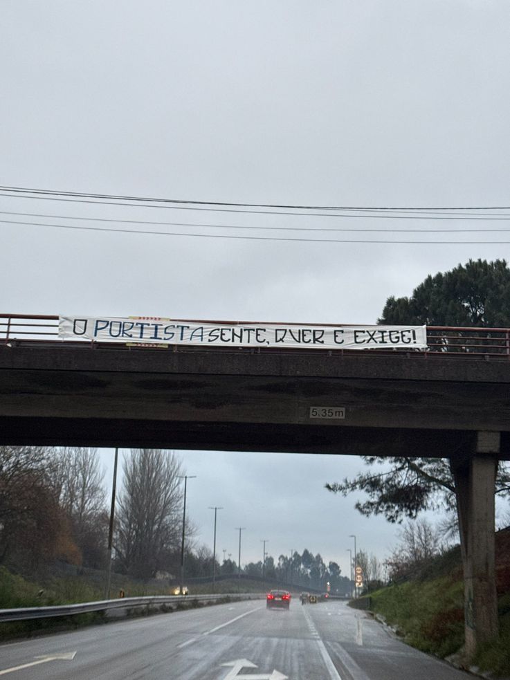 A caminho de Barcelos, foi colocada uma tarja com a seguinte mensagem: «O portista sente, quer e exige.»