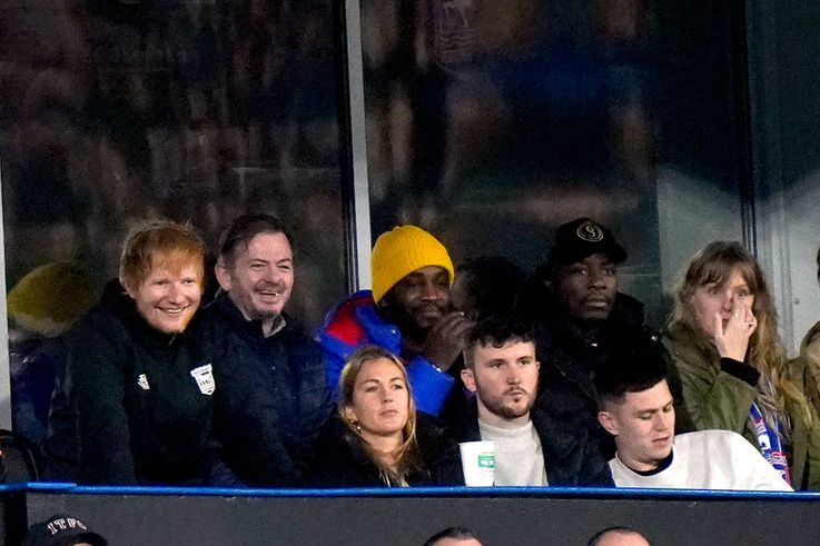 Enquanto Ed Sheeran sorri nas bancadas perante a boa reação do Ipswich ao golo do United...