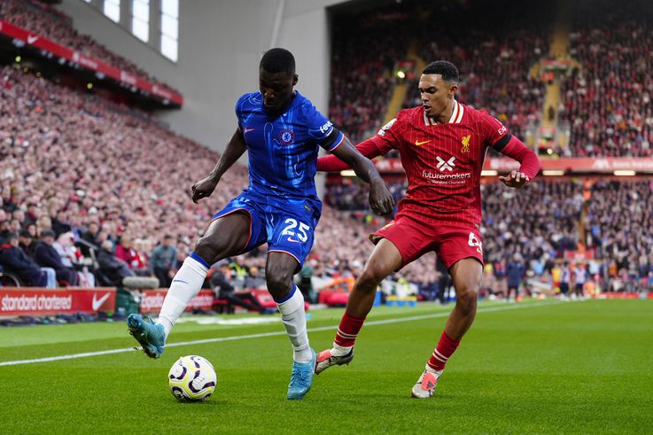 Que jogada de Pedro Neto! O extremo do Chelsea passa por Alexander-Arnold e Konaté e serve Cole Palmer na perfeição - este porém dispara contra um aniversário. Grande entrada do internacional de Portugal no duelo de Anfield
