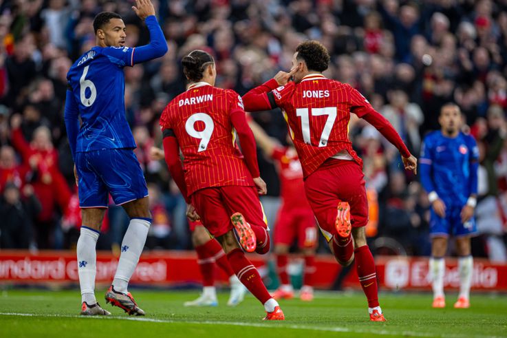 O Liverpool mantém-se firme na liderança da Premier League, após vencer o Chelsea em duelo eletrizante da 8.ª jornada. Curtis Jones, autor do 2-1 aos 52’, saiu sob enorme ovação, ele que foi herói ao lado de Mohamed Salah, que, aos 29’, fez o 1-0, de penálti (sofrido por Jones), e protagonizou a assistência para o segundo. Os blues deram luta, ainda chegaram à igualdade por Nicolas Jackson (48’) e, no tudo por tudo à beira do fim, quase conseguiam o 2-2 num cabeceamento de Renato Veiga, que saiu ligeiramente por cima.