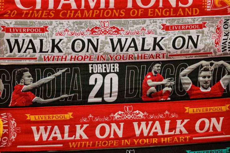 Cachecóis nas imediações de Anfield em homenagem a Diogo Jota
