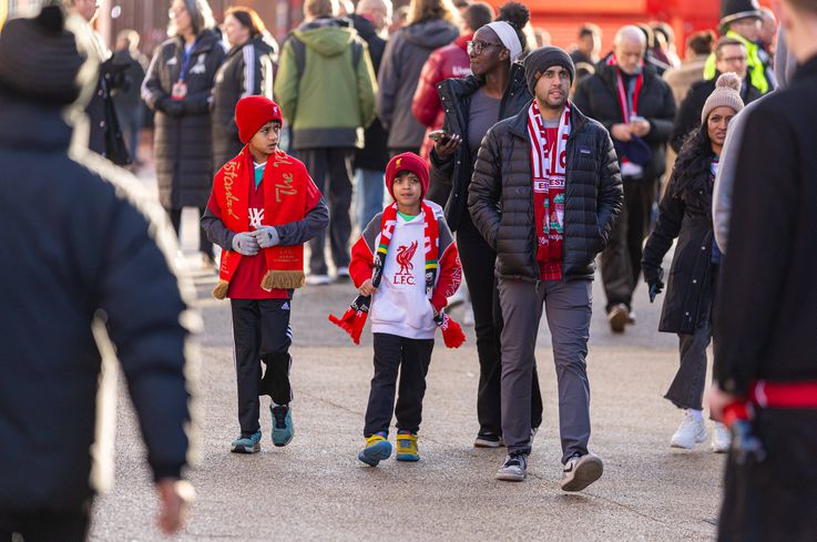 Equipas entram no relvado. Os filhos de Diogo Jota, Dinis e Duarte, sobem ao relvado de Anfield, acompanhando os jogadores na entrada para as quatro linhas. Rute, viúva de Diogo Jota, assiste ao jogo na bancada.