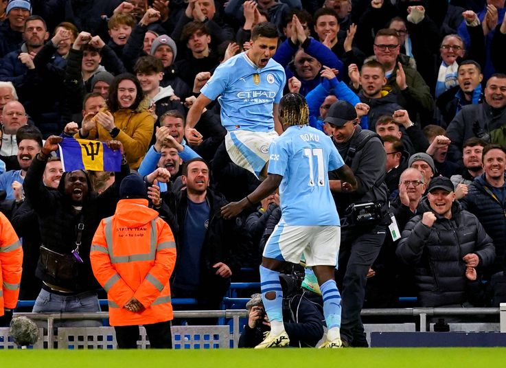 XI | Ortega Moreno, Lewis, Akanji, Dias (C), Gvardiol, Rodrigo, Bernardo, Doku, Foden, Grealish, Alvarez