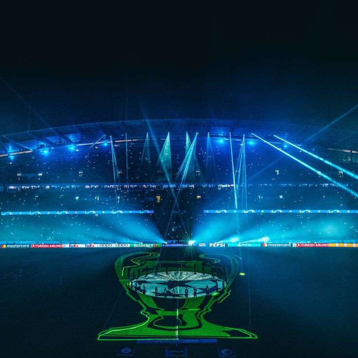 Decorre neste momento o habitual espetáculo de luzes e sons no Etihad. Está tudo pronto para a entrada das equipas no relvado...