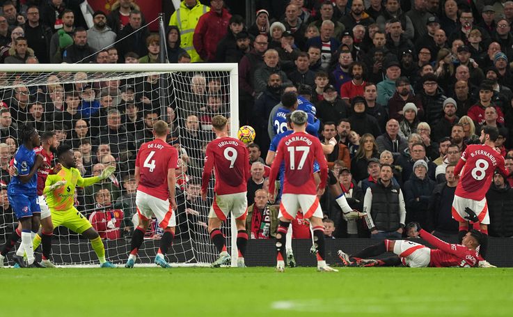 É penálti para o Manchester United! Casemiro encontra Hojlund, Sánchez acerta no avançado e o dinamarquês cai! É o grande lance da partida!
