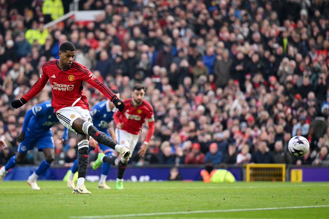 Sétimo golo de Rashford no campeonato (Foto: Premier League/X)