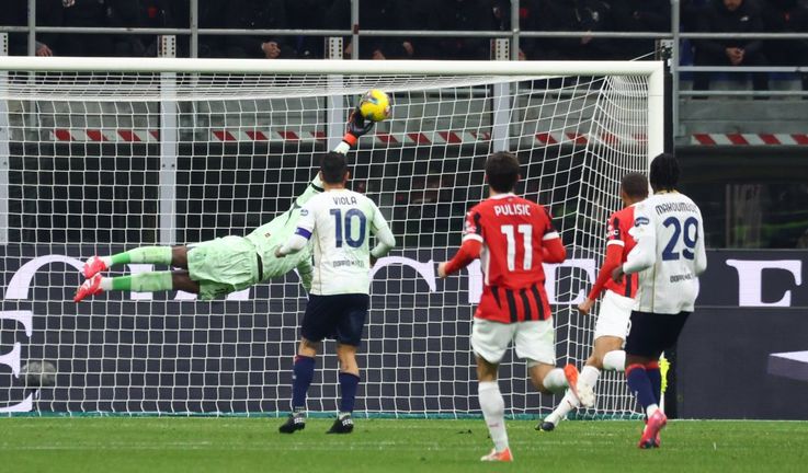 Que perigo! Milan! Na cara do guarda-redes, Abraham dispara, mas Caprile defende!