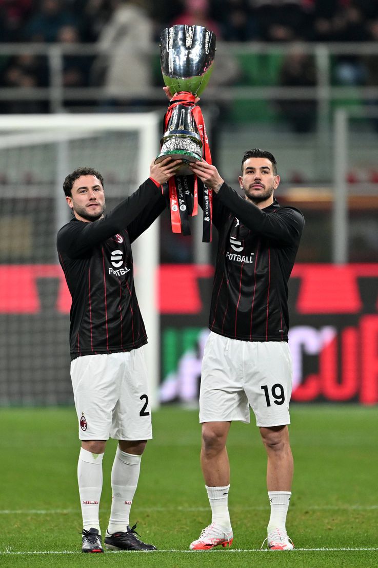 Davide Calabria e Theo Hernandez mostram a San Siro a Supertaça conquistada em Ríade (foto: Imago)