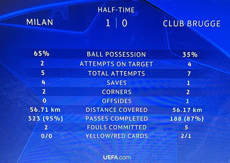 Acaba a primeira parte. O Milan sai ao intervalo a vencer por 1-0 e vendo o adversário a jogar com dez elementos. Foi o Club Brugge a ter as primeiras oportunidades de golo, tendo mesmo enviado uma bola à trave, mas os rossoneri foram mais afortunados, marcando através de um canto direto, por Pulisic (36'). E quatro minutos depois Onyedika viu o vermelho. Tudo mais fácil para Paulo Fonseca e Rafael Leão, mas a equipa da casa está longe de encantar