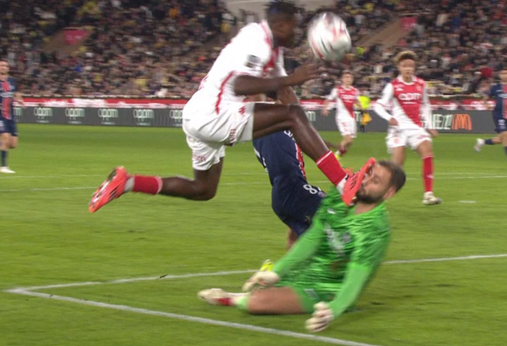 Penálti para o Mónaco! Marquinhos oferece a bola a Akliouche, o avançado entra na área e a bola acaba por ressaltar na mão do brasileiro.