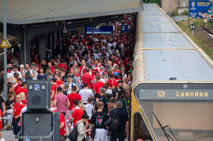 O transporte público para o Estádio Olímpico de Berlim estava bem preenchido de adeptos polacos.