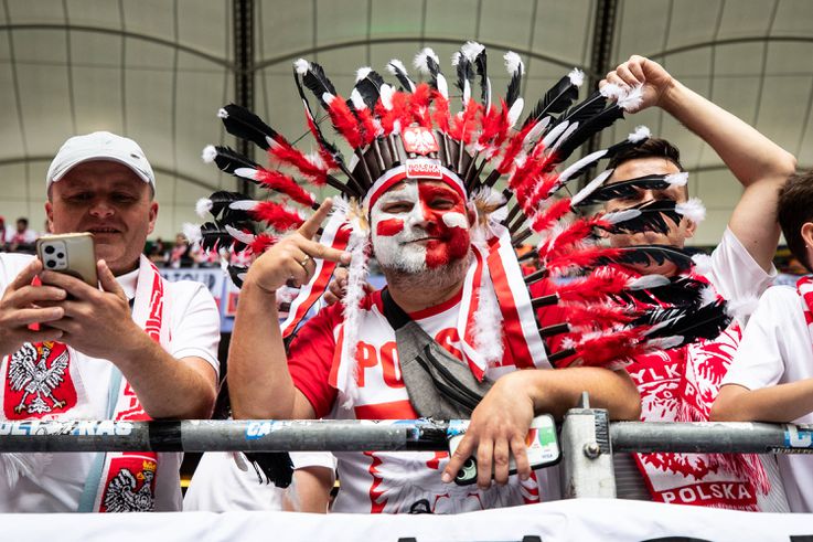 Os adeptos dos dois países já vão dando espetáculo nas bancadas do Estádio do Hamburgo, desde imitações a Ruud Gullit a máscaras de águias polacas.