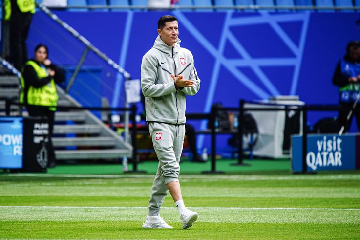 Lewandowski já subiu ao relvado do Volksparkstadion. Apesar da lesão, o melhor marcador de sempre da Polónia (82 golos em 150 jogos) estará no banco de suplentes