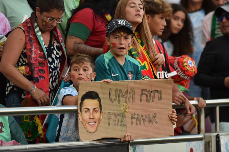 As bancadas vão cantando o nome de Cristiano Ronaldo.