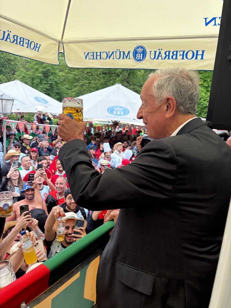 Marcelo Rebelo de Sousa, Presidente da República, brindou com os adeptos em Munique.