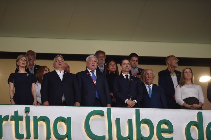 Viktor Orbán, presidente da Hungria, na Tribuna de Honra, assim como Marcelo Rebelo de Sousa, presidente da República, e Pedro Proença, presidente da Federação Portuguesa de Futebol - Foto: Miguel Nunes