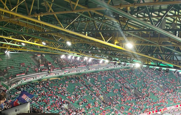 Bancadas ainda um pouco despidas, mas os adeptos vão entrando no Estádio José Alvalade.