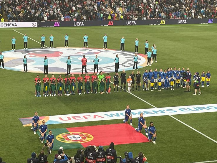 No Estádio de Genebra vai sendo cada mais mais percetível e audível o apoio a Portugal. Segundo os últimos relatos da jornalista Filipa Reis, enviada-especial de A BOLA à Suíça, as jogadoras nacionais foram altamente ovacionadas quando o speaker do estádio anunciou os seus nomes. O osso, no relvado, promete ser duro de roer, mas, nas bancadas, tudo o que depender dos portugueses promete ser feito...